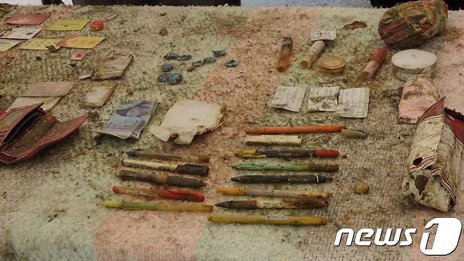 (무안=뉴스1) 박영래 기자 = 11일 세월호 4층에서 발견된 미수습자 단원고 조은화양의 가방에서 나온 내용물. 지갑, 지폐, 동전, 필기구등이 가방에 들어 있었다.(세월호미수습자가족 제공)2017.5.11/뉴스1