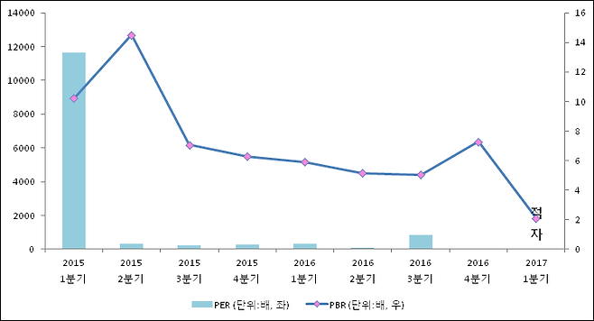 주가가 1주당 수익의 몇배가 되는지 나타내는 주가수익비율(PER)은 11650배로 나타났다. 전년 동기 PER은 96.28배로 이번 분기에 상승했다.주가가 1주당 순자산의 몇배인지 알려주는 주가순자산비율인 PBR은 10.23배이다. 지난해 동기 PBR은 5.15배로 이번 1분기 PBR이 상승했다.