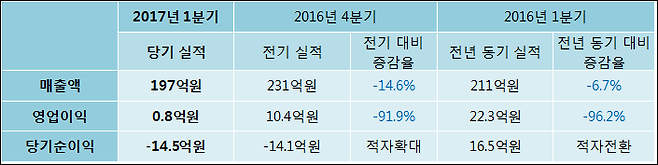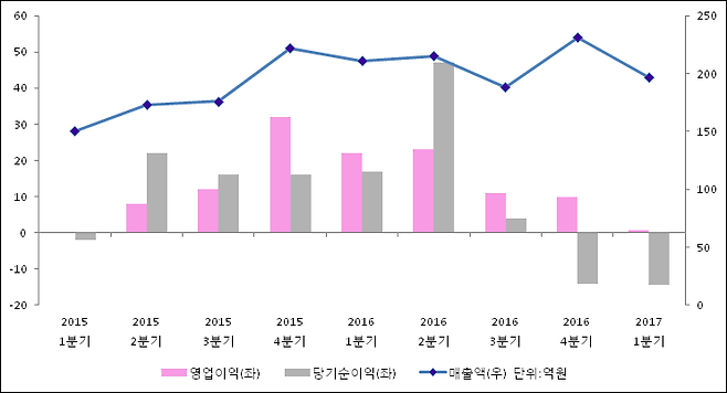 05월 12일 루트로닉(085370)의 2017년 1분기 연결 잠정 실적이 발표됐다.