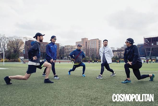 ‘러너’하면 건강한 남자의 이미지가 떠오르는데 여기에 대해 어떻게 생각해요? 실제로 자신이 건강한 사람이라는 기분이 드나요?성격 때문에 그런 거 아닐까요? 운동을 좋아하는 사람들은 대부분 사교적이고 긍정적인 편이거든요. 게다가 당연히 건강할 수 밖에 없죠. 각자 기량을 높이고 싶은 마음에 꾸준히 단련하다 보면 자연스레 몸도 좋아지거든요. 저희 크루 내에서도 항상 서로에게 좋은 바이브를 나눠주려고 노력해요.