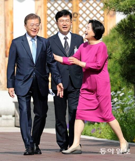 특히 김 여사는 관저 정문인 인수문(仁壽門) 앞까지 나와 “가세요 여보, 잘 다녀오세요”라며 문 대통령의 뒷모습을 지켜보다 갑자기 약 5m를 달려가 문 대통령의 옷매무새를 만지며 “바지가 너무 짧아요. 바지 하나 사야겠어요. 다녀와요”라고 말했다.