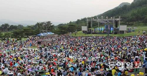 | 지난해 경기 파주시 서원밸리CC에서 열린 그린 콘서트에 4만여 명의 관객이 운집해 있다. 올해 그린콘서트는 27일 개최된다. 입장료는 없다. 동아일보DB |