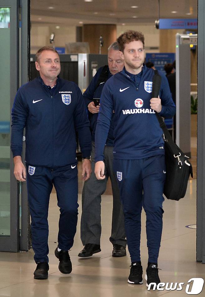 (인천공항=뉴스1) 이재명 기자 = 폴 심프슨 잉글랜드 U-20 축구대표팀 감독이 16일 오전 FIFA U-20 월드컵 코리아 2017에 출전하기 위해 인천공항을 통해 입국하고 있다. 2017.5.16/뉴스1