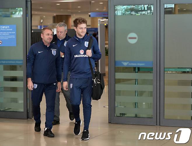 (인천공항=뉴스1) 이재명 기자 = 폴 심프슨 잉글랜드 U-20 축구대표팀 감독(왼쪽)이 16일 오전 FIFA U-20 월드컵 코리아 2017에 출전하기 위해 인천공항을 통해 입국하고 있다. 2017.5.16/뉴스1