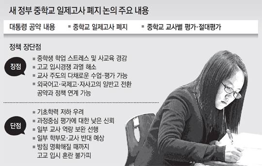 중학교에서 중간·기말고사를 포함한 일제고사 형태의 시험이 없어지면 학생의 학업 부담 경감 효과는 상당히 클 것으로 전망된다.