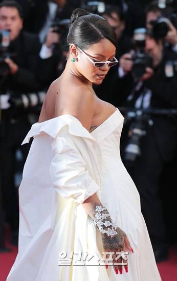 제 70회 칸 국제영화제(Cannes Film Festival) 경쟁부문에 초청된 영화 '옥자'의 레드카펫 행사가 19일 오후(현지시각) 프랑스 칸 뤼미에르 극장에서 열렸다. 가수 리한나가 포즈를 취하고 있다.