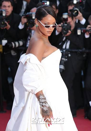 제 70회 칸 국제영화제(Cannes Film Festival) 경쟁부문에 초청된 영화 '옥자'의 레드카펫 행사가 19일 오후(현지시각) 프랑스 칸 뤼미에르 극장에서 열렸다. 가수 리한나가 포즈를 취하고 있다.
