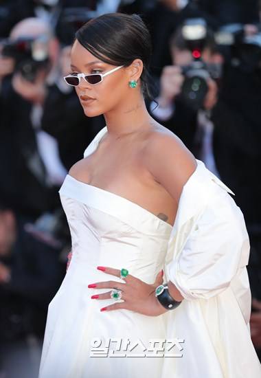 제 70회 칸 국제영화제(Cannes Film Festival) 경쟁부문에 초청된 영화 '옥자'의 레드카펫 행사가 19일 오후(현지시각) 프랑스 칸 뤼미에르 극장에서 열렸다. 가수 리한나가 포즈를 취하고 있다.