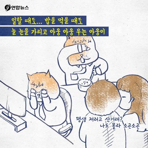 일할 때도...밥을 먹을 때도 늘 눈을 가리고 아웅 아웅 우는 아웅이