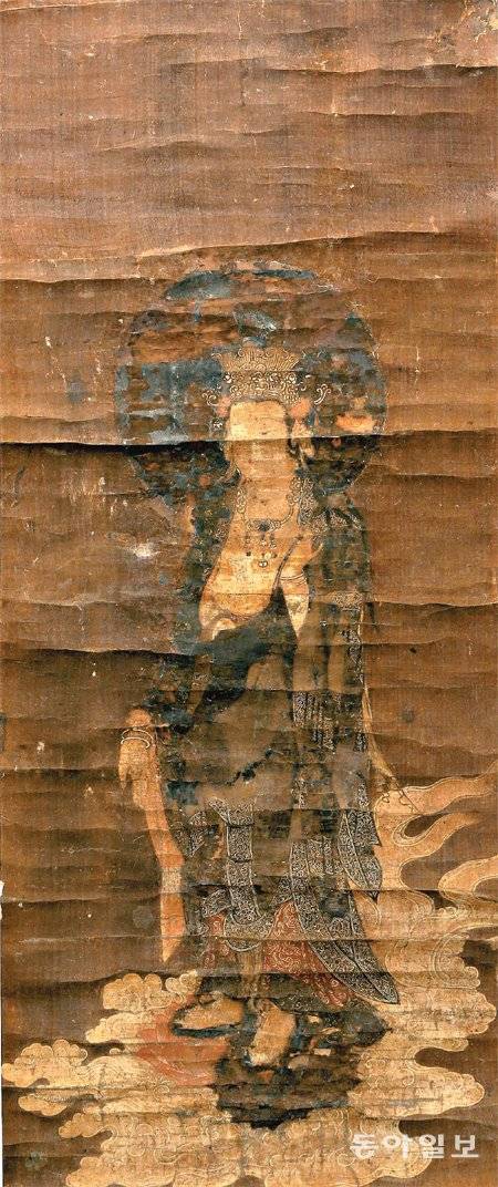| 최근 일본에서 한국으로 넘어온 고려 불화 ‘관음보살내영도’. 고려시대 내영도 가운데 아미타불 대신 관음보살을 그린 불화는 처음이다. 금가루로 칠한 관음보살의 보관과 목걸이, 팔찌, 옷자락이 더없이 화려하다. 변영욱 기자 cut@donga.com |