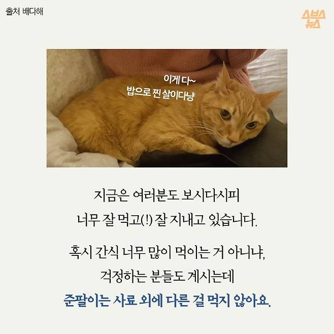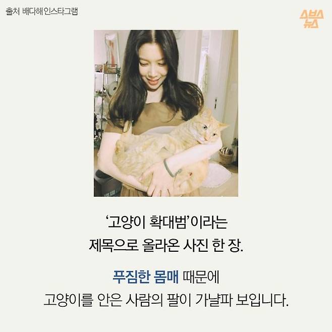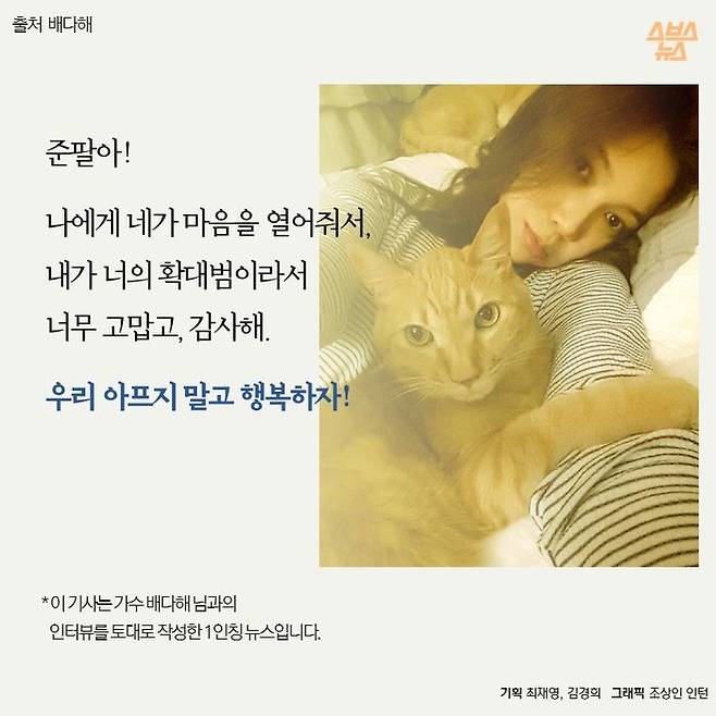 최근 온라인 커뮤니티에서 가수 배다해 씨와 그녀가 키우는 고양이가 화제가 됐습니다. 고양이가 너무 뚱뚱해 보였기 때문입니다. 배씨는 살이 찐 자신의 고양이에게 남다른 애착을 가지고 있었습니다. 스브스뉴스가 그들의 특별한 사연을 들어봤습니다.
