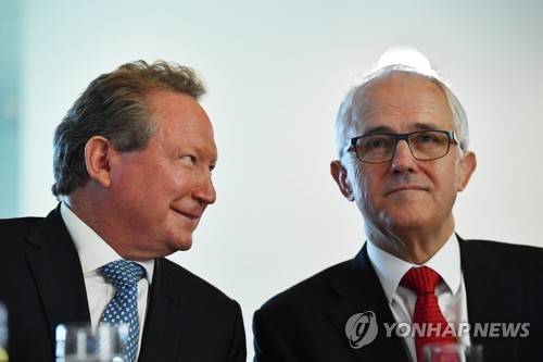 epa05980633 Australian businessman Andrew 'Twiggy' Forrest and Australian Prime Minister Malcolm Turnbull (R) at an event unveiling one of Australia's largest philanthropic donations to fund a variety of social and scientific causes at Parliament House in Canberra, Australian Capital Territory, Australia, 22 May 2017. Australian businessman and philanthropist and his wife, Nicola, announced they will donate 400 million Australian dollar (about 297 million US dollar) to fund social and medical causes. EPA/MICK TSIKAS AUSTRALIA AND NEW ZEALAND OUT