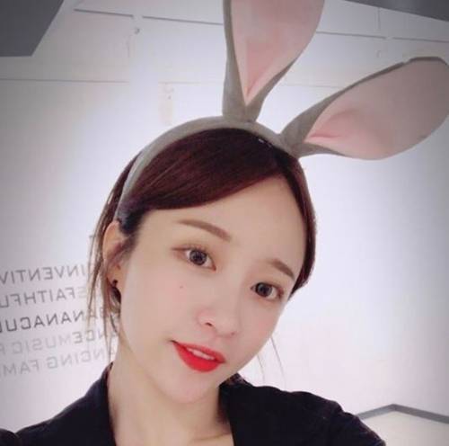 공개된 사진 속 하니는 토끼 머리띠를 쓰고 셀카를 찍는 모습.