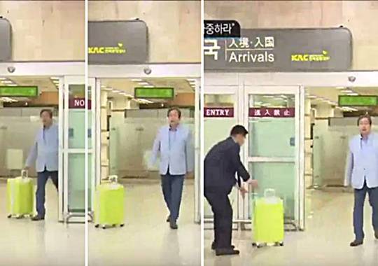 '안 웃은 사람 없다'는 김무성 입국장면 캐리어 움짤