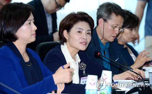 (서울=연합뉴스) 한상균 기자 = 한정애 국정기획자문위원회 사회분과 위원(가운데)이 25일 오후 서울 종로구 통의동 금융감독원 연수원에 마련된 국정기획자문위원회에서 열린 고용노동부 업무보고에서 모두발언을 하고 있다. 2017.5.25