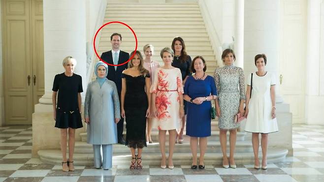 북대서양조약기구(NATO) 정상회의에 참석한 각국 정상들의 영부인들이 찍힌 기념사진에 남성 한 명이 함께 끼어 있는 모습이 포착돼 궁금증을 불러 일으키고 있습니다.
