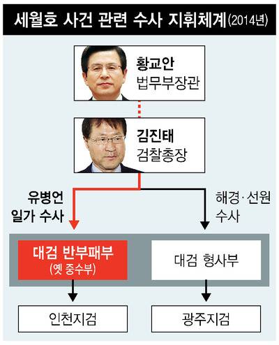 황교안 장관 등 법무부의 ‘세월호 해경 수사 외압’ 의혹이 불거지면서, 2014년 검찰 수사 당시 유병언 전 세모그룹 회장 일가의 수사 지휘를 대검 반부패부(옛 대검 중수부)가 맡게 된 경위도 규명돼야 한다는 지적이 일고 있다. 법무부와 검찰 수뇌부는 당시 구조에 실패한 해경 등 공권력을 겨냥한 수사를 지연시킨 반면, 유 전 회장에 대해선 대대적이고 공개적인 압수수색 등을 벌이고 군까지 동원해 박근혜 정부의 ‘정치적 의도’를 반영한 게 아니냐는 비판을 받은 바 있다. 검찰이 세월호 사건 전반을 재수사할 경우 이런 결정 과정에 청와대나 법무부가 개입됐는지를 밝혀야 할 것으로 보인다.