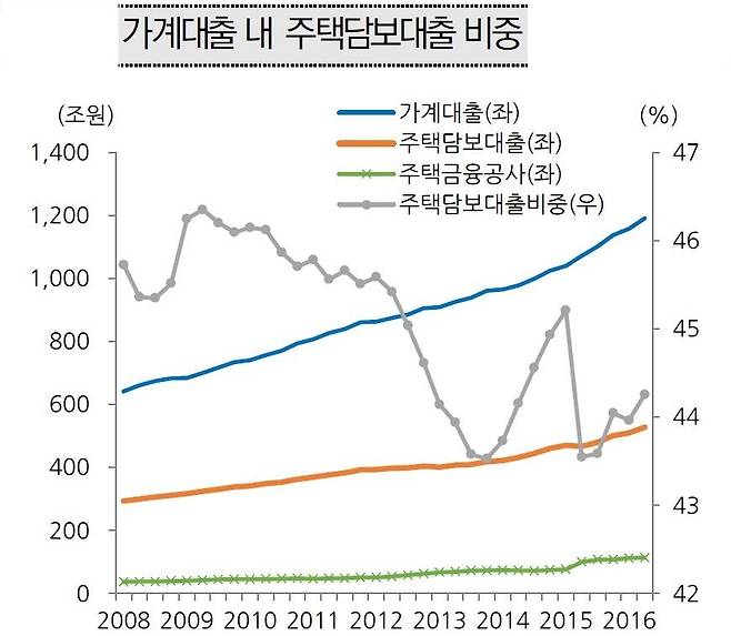 당시 정부 자료에 따르면 2000년 말 54조2000억원이던 은행권 주택담보대출이 2006년 말엔 218조3000억원으로까지 부풀었다. 2002년 464조원이던 가계부채는 2006년 607조원으로 31% 늘었다. 주택담보대출이 가계대출을 주도했다. 가계대출에서 차지하는 주택담보대출 비율이 2003년 60%에서 2006년 69.6%로 높아졌다.