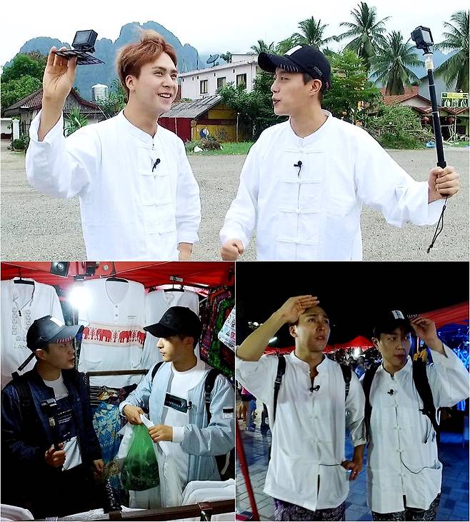 그런 가운데, 윤두준과 손동운의 케미가 돋보이는 커플룩 인증샷이 공개돼 시선을 강탈하고 있다. 스틸 속 두 사람은 라오스 전통 상의와 화려한 패턴의 냉장고 바지를 입고 포즈를 취하고 있다.