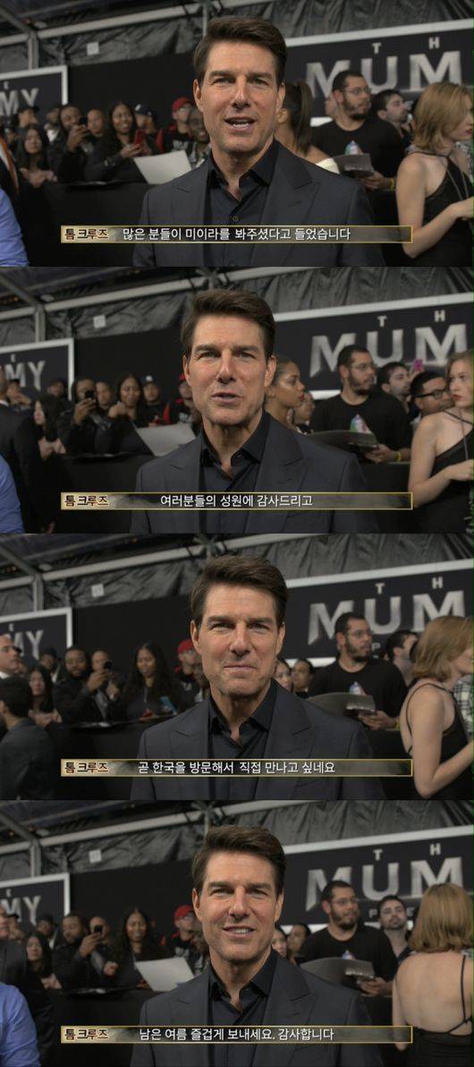 '미이라' 톰 크루즈, 韓 팬에 감사인사 "성원에 행복..한국 방문하고파"