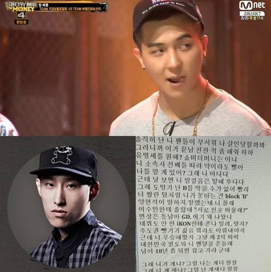 가사를 보면 '솔직히 난 니 팬들이 무서워 나 살인 당할까봐' '니 소속사 선배들따라 약이라도 빨아' '면상은 동남아 GD' '데뷔도 안한 아이콘한테 존X 밀려' '님이 18년 되면 접고 군대나 가라' 등이다.