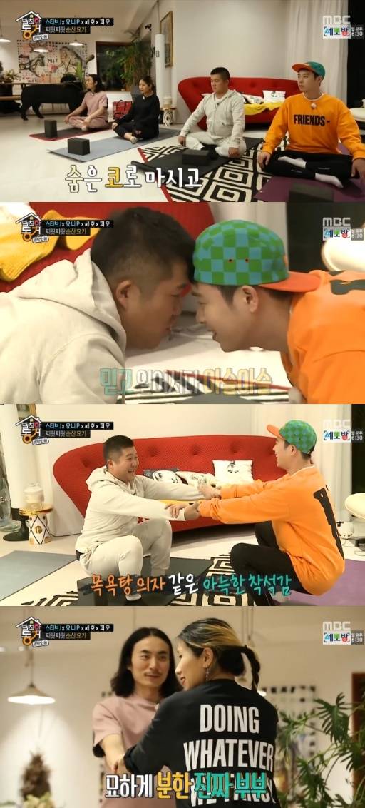'발칙한 동거' 조세호와 블락비 피오가 커플 요가를 했다.