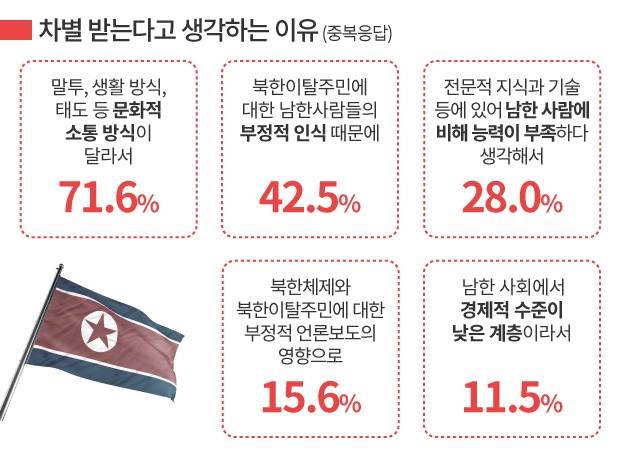 실제 탈북여성 23.5%가 차별을 경험했다고 답했다.