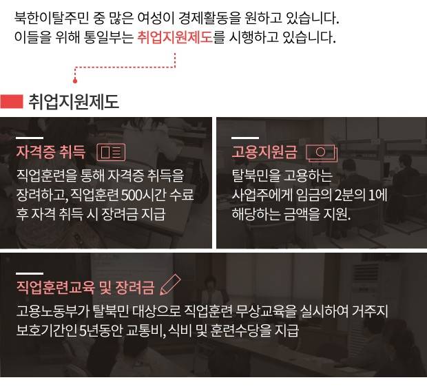 이들을 위해 통일부도 취업지원제도를 시행하고 있죠.