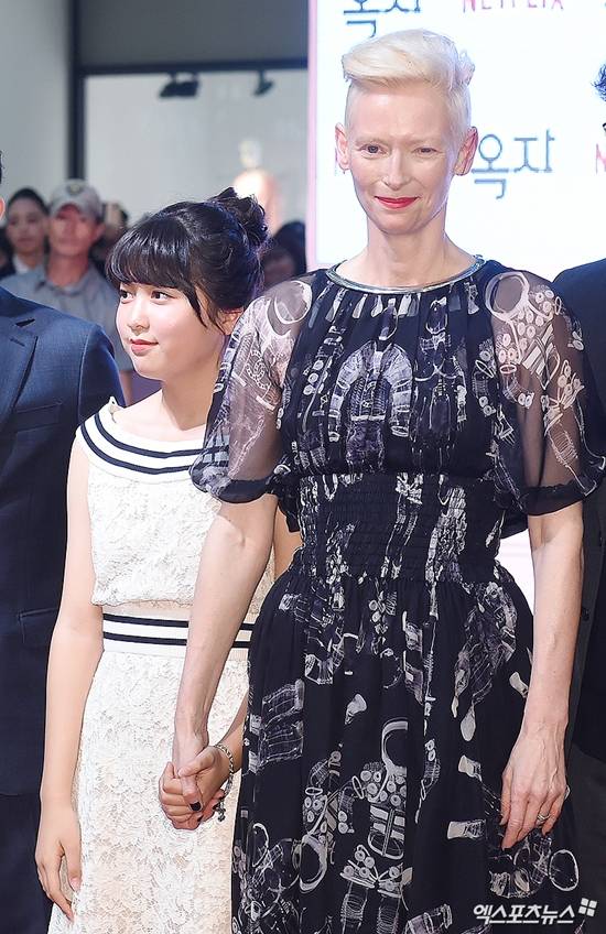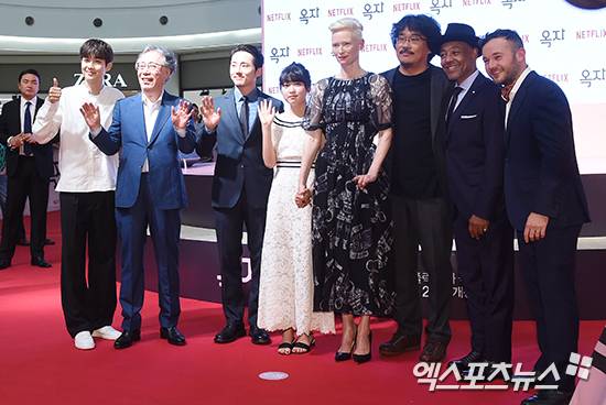 13일 오후 서울 영등포 타임스퀘어에서 열린 '옥자'(감독 봉준호) 레드카펫에는 봉준호 감독과 배우 틸다 스윈튼, 안서현, 스티븐 연, 변희봉, 최우식, 지안카를로 에스포지토, 다니엘 헨셜이 참석했다.