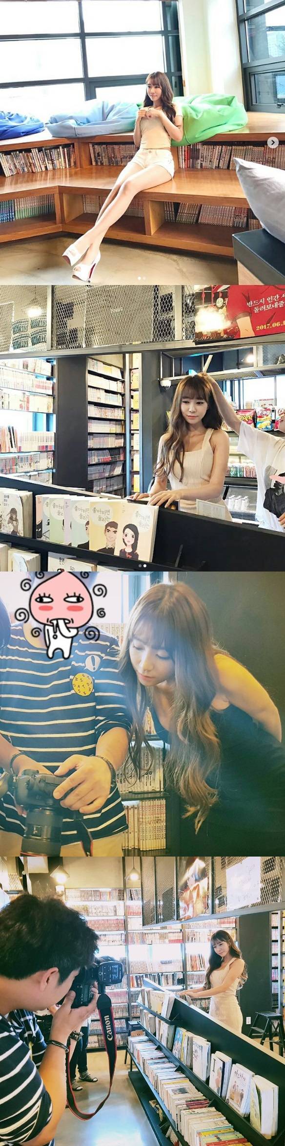 사진 속 이소율은 만화방 곳곳에서 포즈를 취하고 있다.