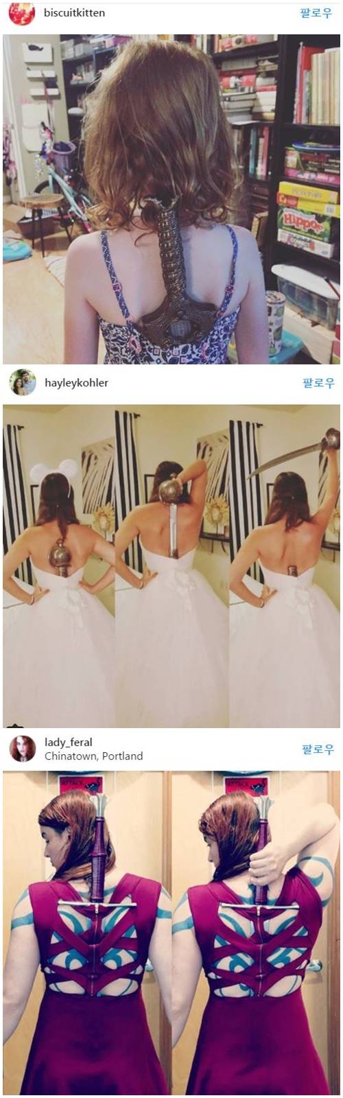 많은 여성들이 이 장면을 따라하며 인스타그램에 사진을 올리고 있다. 이들은 ‘#WWGotYourBack’라는 글과 함께 자신의 등에 검을 착용한 사진을 앞다퉈 공개하고 있다.