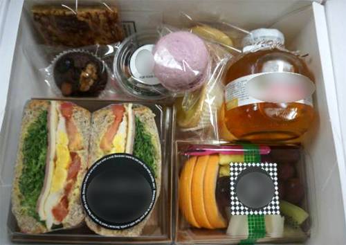 | 대학원 논문 심사 철을 맞아 한 업체가 판매하는 ‘논문심사 다과상자’. 수제 샌드위치와 과일, 마카롱 등으로 구성된 다과상자 가격은 2만5000원이다. 인터넷 캡처 |