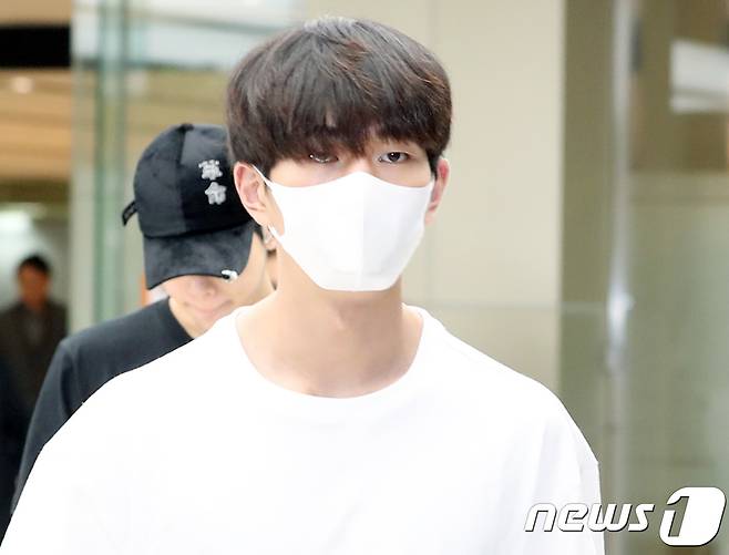 (김포공항=뉴스1) 권현진 기자 = 샤이니 온유가 제주도 SM 워크숍을 마친뒤 21일 김포공항으로 도착해 차로 이동하고 있다.