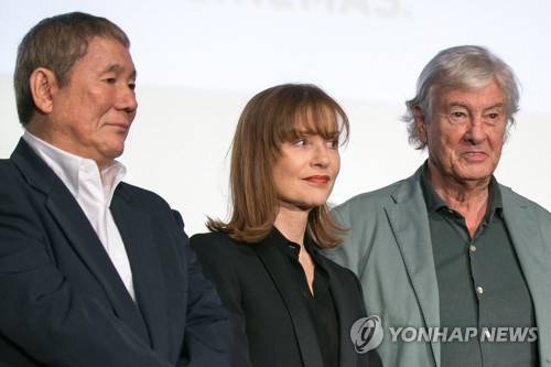 epa06043178 Japanese director Takeshi Kitano (L), French actress Isabelle Huppert (C) and Dutch film director Paul Verhoeven (R) attend the opening ceremony of the 2017 French Film Festival in Tokyo, Japan, 22 June 2017. The festival showcases a selection of recent French films from 22 to 25 June. EPA/CHRISTOPHER JUE