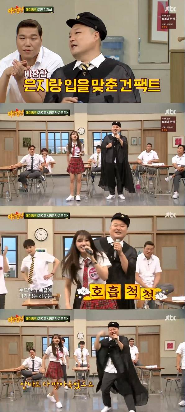 24일 오후 방송된 JTBC '아는형님'에서는 게스트로 등장한 에이핑크 정은지가 5년 전 강호동의 곡 '1분 전'에 참여했던 사연을 밝혔다.