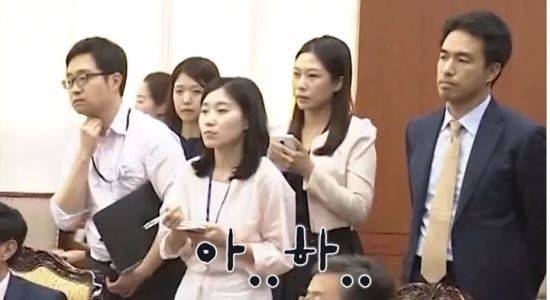 통역 없이 계속되는 장 장관의 발언에 외교부 출입기자들은 이들의 대화에 귀를 쫑긋 세워가며 듣고 취재해야 했다. 이 모습을 두고 외교부 기자들이 ‘극한직업’에 등극했다는 하단의 자막은 네티즌에 큰 웃음을 안겼다.