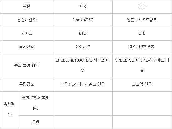 국내 통신·네트워크 전문가가 미국과 일본에서 LTE 로밍과 현지 유심 구매 방식으로 서비스 속도를 측정한 결과, 차이가 확연했다.