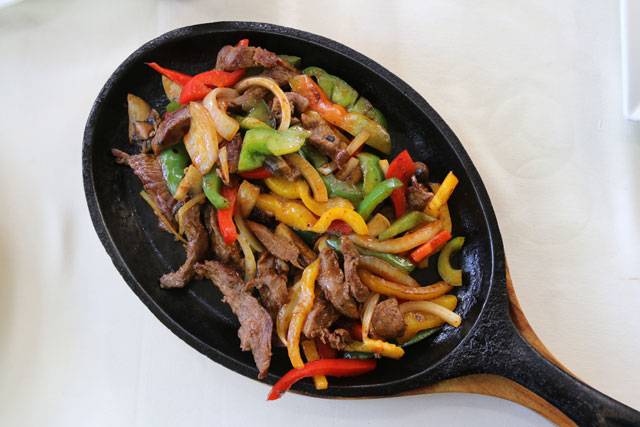 닭고기나 쇠고기를 양파, 파프리카, 고추 등 채소와 함께 볶아 토르티야에 직접 싸 먹는 요리다. 주로 뜨거운 철판에 서빙한다. 고추기름을 더해 먹으면 더 맛있다.