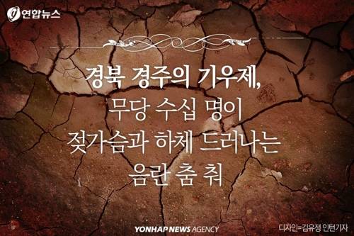 경주에서는 푸른 버들가지 고깔을 쓴 무당 수십 명이 젖가슴과 하체가 드러날 정도로 저고리 깃과 치맛자락을 들락날락하는 음란 춤을 췄다.