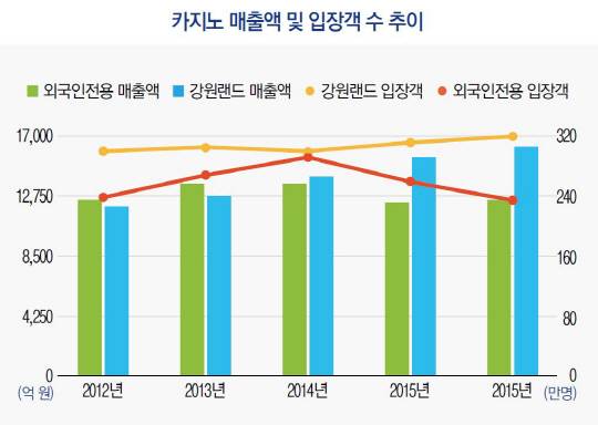 카지노 산업 판을 키워야 마카오처럼 시너지 효과를 볼 수 있다는 의견이 나오고 있지만, 정책 결정권을 가진 정부에서는 별다른 대책을 내놓지 않고 있다. 지난 대선에 출마한 모든 대통령 후보들도 카지노 산업 활성화에 대한 정책 공약은 내놓지 않았다. 여전히 한국에서 카지노는 일종의 금기어인 셈이다.