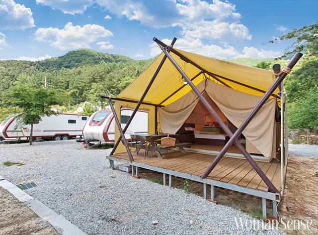 경기도 가평 화악산과 명지산, 국망봉이 요새처럼 감싸고 있는 형태로 정면에 명지산이 펼쳐져 있어 청정 지역에서 오붓하게 캠핑을 즐길 수 있다. 이용객이 캠핑하면서 느끼는 불편함을 해소하기 위해 세심한 노력을 기울였다. 캠핑 카라반 실내에 침실과 주방, 화장실, 샤워실을 갖춘 것은 물론 냉난방과 온수 사용이 가능해 어린아이를 동반한 가족이 불편함 없이 캠핑을 즐길 수 있다.
