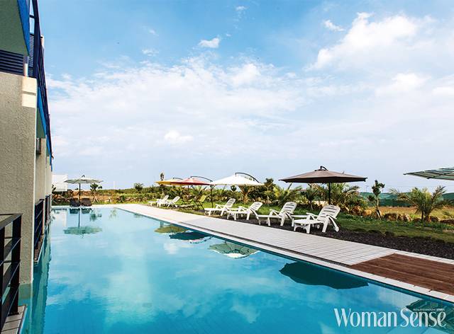 싱가포르의 마리나베이 샌즈 호텔의 옥상 수영장과 몰디브의 W리조트를 조합했다. 관계자에 따르면 설계하는 데만 3년 이상 걸렸다. 바다와 이어지는 것처럼 보이는 야외 수영장은 방문객들의 사진 포인트로, 인생샷을 건지기 위한 이들의 발길이 끊이지 않는다고. 객실로 들어가면 속이 뚫리는 시원함을 느낄 수 있다. 객실 창 전면에 넓은 바다가 보이기 때문. 객실에서 일출과 일몰을 모두 볼 수 있는 것도 특징이다. 그뿐만 아니라 바다를 바라보며 스파나 히노키 족욕을 즐길 수 있다. 테라스에서 프라이버시를 지키면서 바다를 배경으로 바비큐를 맛볼 수도 있다.