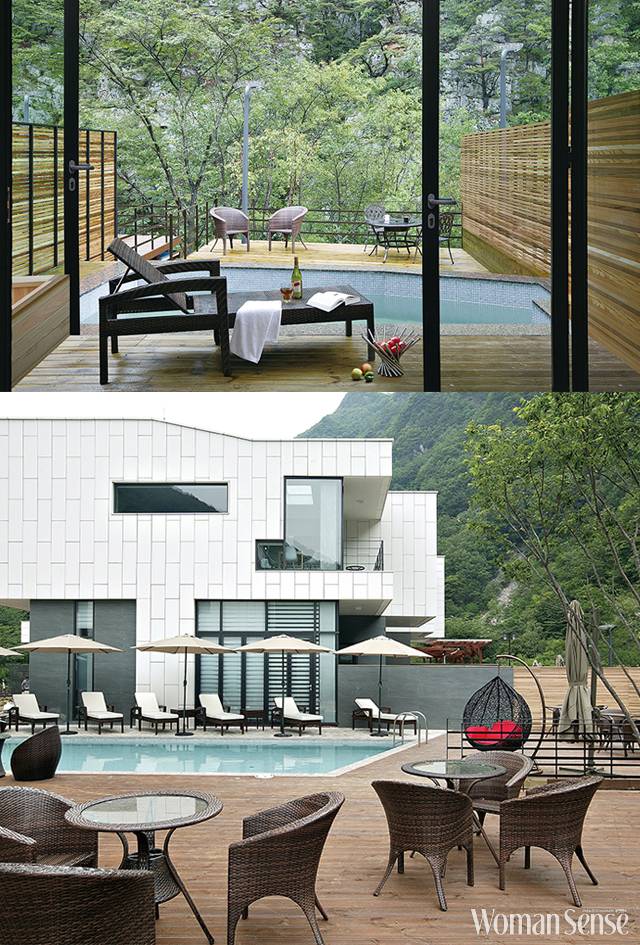 다른 사람의 방해를 받지 않고 편안하게 휴가를 즐길 수 있다는 점이 메리트로 작용해 각광받는 펜션 타입이다. 고급스러운 인테리어와 부대시설을 갖춘 곳에서 오로지 나와 함께한 사람들만 조용히 스파와 수영 시설을 이용할 수 있다.
