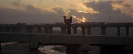 영화의 결말은 다소 뜬금없다 느껴질 수 있다. 윤애는 고향으로 돌아가고, 정희도 강한 엄마의 자리를 향해 힘들게 발길을 돌리고 준태는 홀로 남는다. 왕십리를 상징하는 살곶이다리에 선 준태는 당구장 아저씨에게 고향에 뿌리를 내리고 정착하겠다고 말한다.(사진) 그들이 서 있는 살곶이다리 저편에는 차들이 힘차게 달리는 성동교가 보이고 그 너머로는 서울이라는 도시가 펼쳐져 있다. 왕십리 안의 섬과 같은 존재였던 두 사람은 영화의 마지막에 의기투합한다.