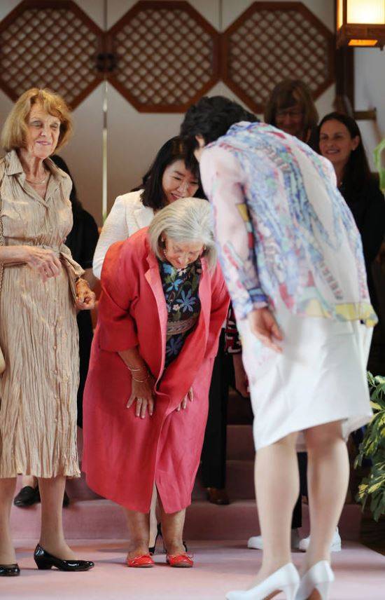 이날 만난 토마스 허버드 전 주한미국대사 부인인 조앤 허버드 여사가 김 여사가 입고 있던 옷을 보며 “무척 아름답다”고 칭찬하자 김 여사는 즉석에서 옷을 벗어 하버드 전 대사 부인에게 건넸다.