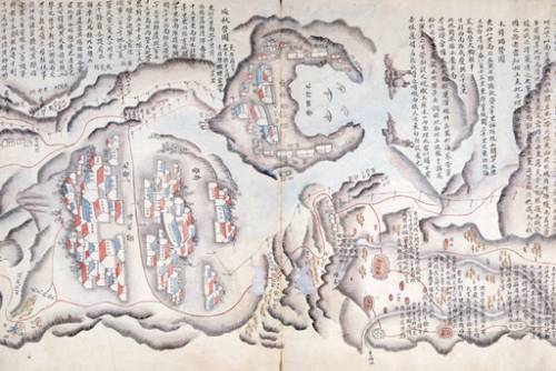 | 수묵과 채색으로 함경도와 러시아 동부지역을 그린 ‘아국여지도’(俄國輿地圖). 김광훈과 신선욱이 고종의 지시를 받고 연해주 일대를 16년간 정탐해 제작했다. 한국학중앙연구원 제공 |