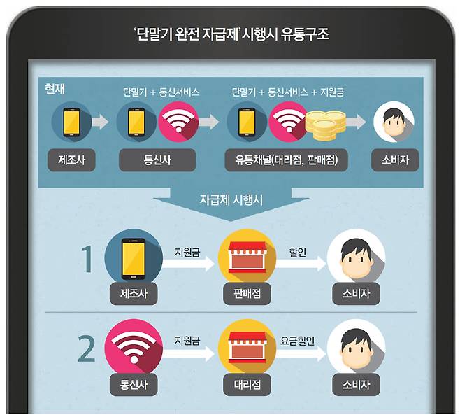 정부가 통신비 인하 방안을 발표한 뒤 휴대전화 유통시장이 급변할 조짐을 보이면서 '단말기 완전 자급제'가 주목받고 있다.