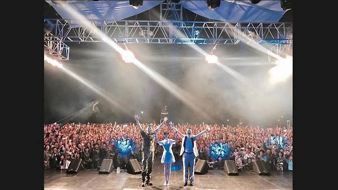 이날 위문공연에서 아이유는 신곡 '팔레트'를 비롯해 '좋은 날', '너랑 나'등을 불렀고 싸이는 '챔피언, 'I LUV IT' 등의 히트곡을 열창하며 신나는 무대를 선사했습니다.