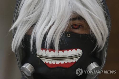 epa06075093 A cosplayer portraying 'Kaneki Ken' from anime 'Tokyo Ghoul' gestures during Cosplay Commuter events in Kuala Lumpur, Malaysia, 08 July 2017. Cosplay Commuter combines the creative hobby of cosplaying with the usage of public transportation and will take place along the Malaysian Light Rail Transit (LRT) system with activities. EPA/FAZRY ISMAIL