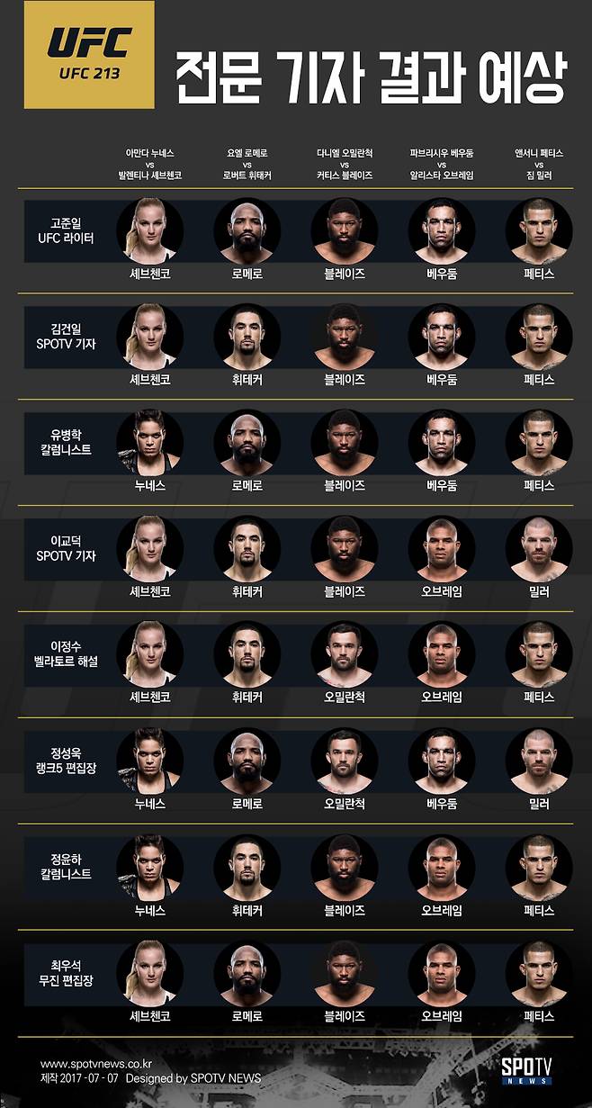 ■ UFC 213 계체 결과
